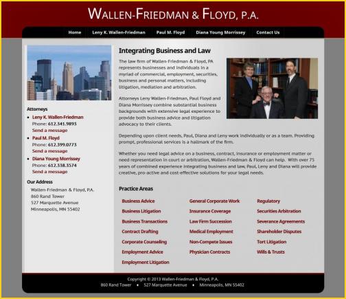Wallen-Friedman & Floyd, P.A. is a Minneapolis law firm specializing in business issues. We built a new website for the firm in early 2013 to replace an older site.